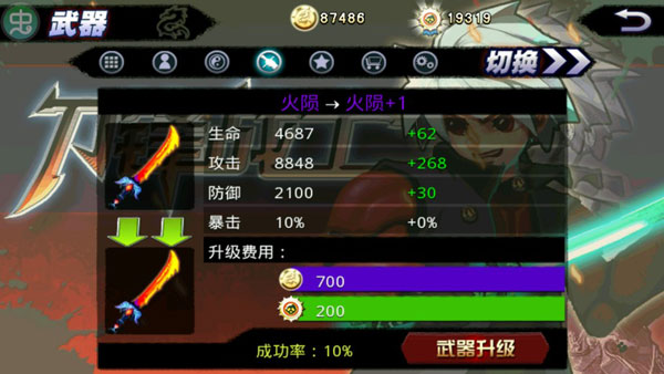 游戏中会有武器售卖,而在这里玩家将已有的武器进行升级,但越是高阶的武器,升级锻造的成功率也就越低。