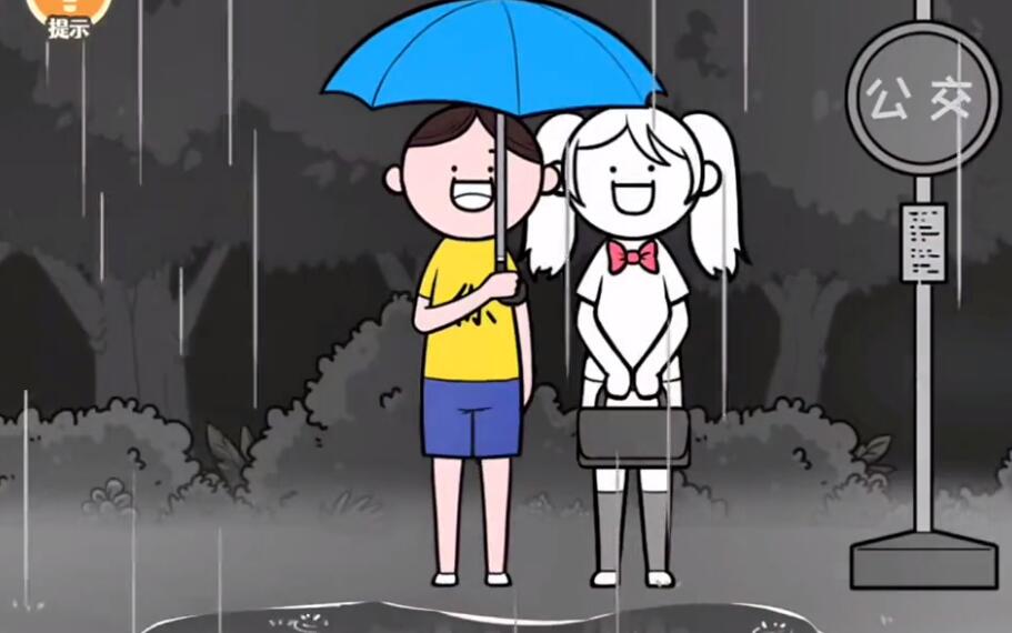 1、这关过法其实很简单,就是你向右靠几步和妹子一起打伞就行了,虽然会有车开过来溅你俩一身水,但这又不是你的责任,所以还是算成功通关的