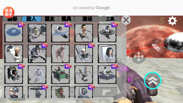 5、玩家可选择要添加的敌人,如马桶人、圆锯人、弹头人、寄生物、外星飞碟等;