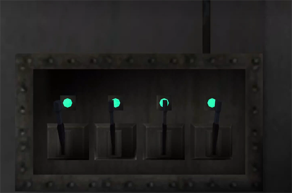 3、将发动机边上的电闸弄成如图所示的那样,大门就会打开,回到刚刚进来的地方,进入屋内