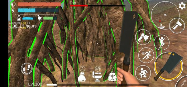 2、开始游戏后我们就需要不断的寻找各种资源让我们在这里世界上活下去,周围看到有用的就可以去获取,比如一些草药、树木等等;