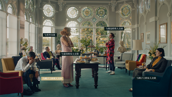 5、来到宴会大厅你可以与他们逐个对话,根据他们口中的线索进行整合从而进一步展开行动。