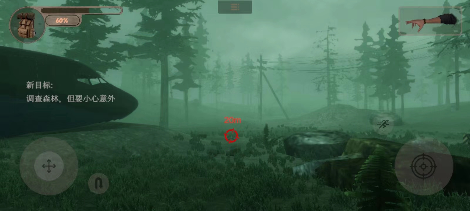 10、玩家需要在飞机坠毁前降落,之后玩家会出现在一个丛林中,并需要调查森林,同时要小心意外;
