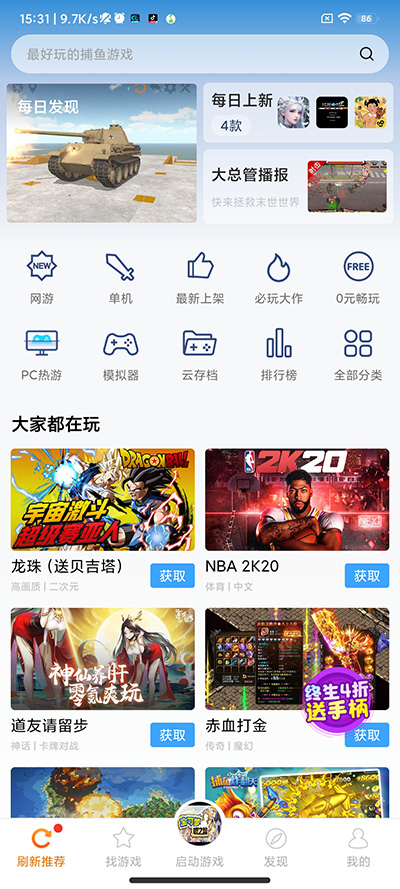 3、全都下载好后,打开悟饭游戏厅,来到首页点击搜索框;