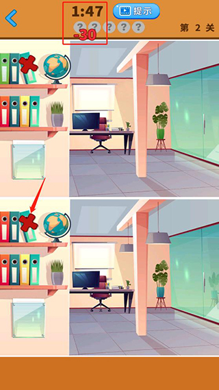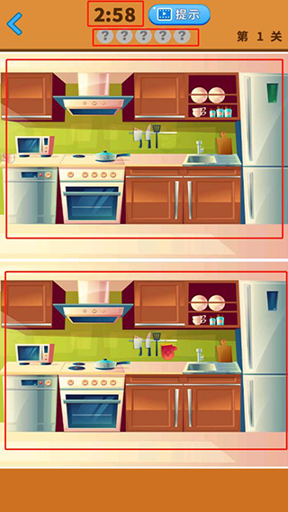 2、游戏玩法简单,注意上面的时间,下面的?表示的则是需要寻找物品的数量,上下两幅图则是需要对比不同的图片;