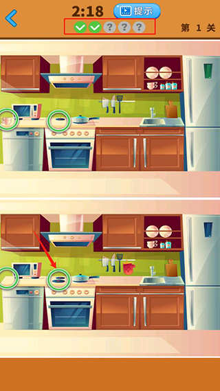 6、不同的地方全部找到恭喜过关,就能开启下一关;