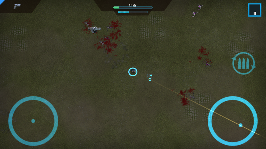 1、2D画面以俯瞰视角进行的射击游戏,画面效果绚丽;