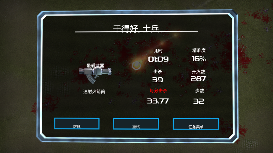 8、游戏结束后,玩家可以查看射击的精准度、开火数等信息。