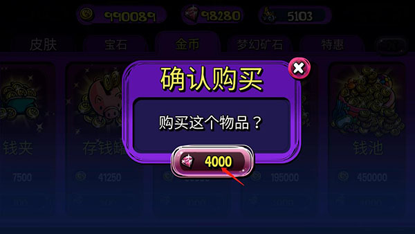 3、有了钻石大家就可以购买金币,点击金币,点击购买;