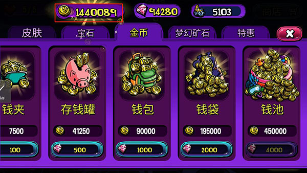 PS:可使用钻石无限购买金币。