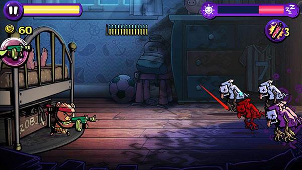 装备各种超级棒的武器!用BB枪、毒枪、胡椒喷雾、飞镖和其他许多许多武器攻击噩梦恶魔!用炸弹轰炸敌人,用霜冰器冰冻他们!在罗宾的床上设置各种了不起的玩具防御道具。建造铅笔路障阻止噩梦,或装备激光灯攻击远处的怪兽。