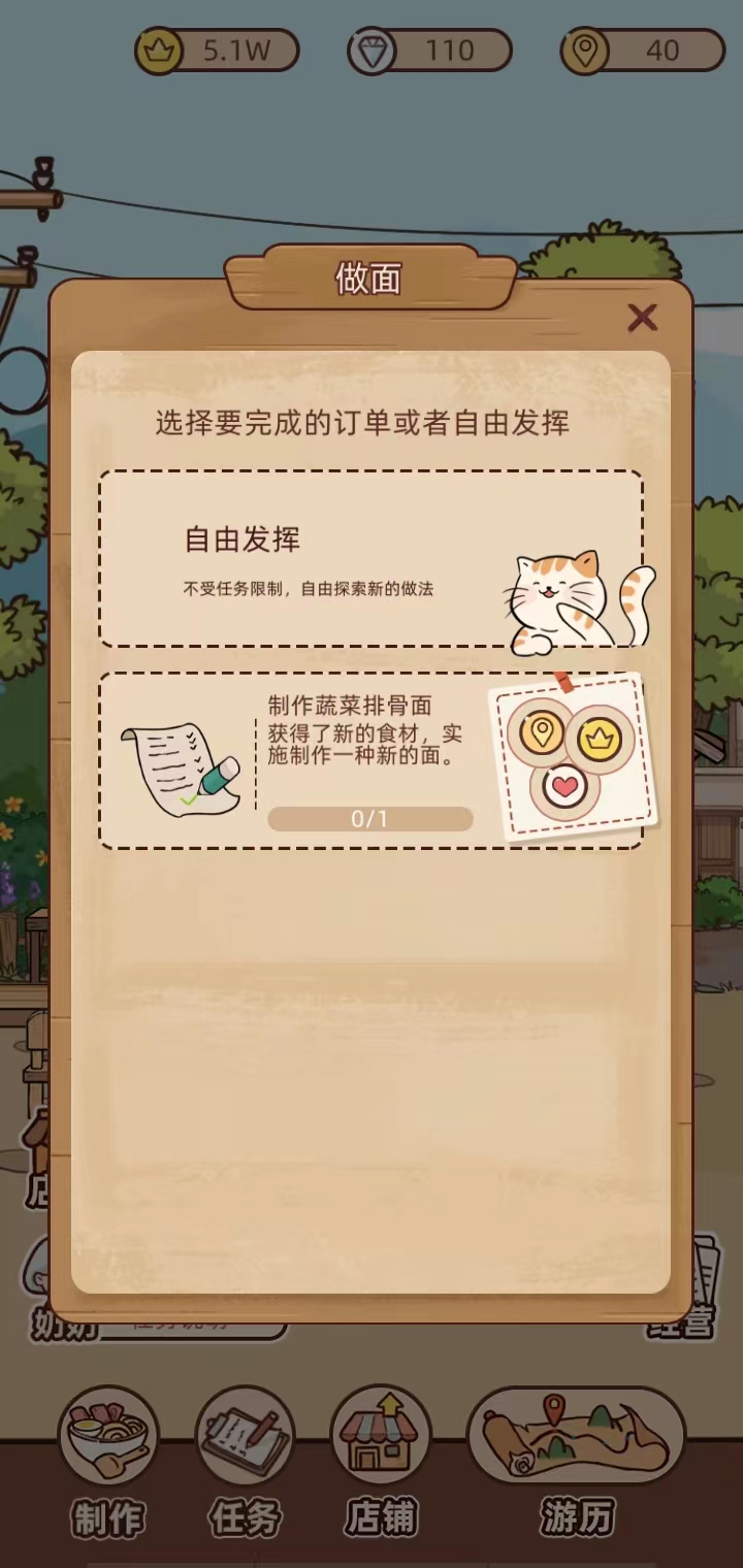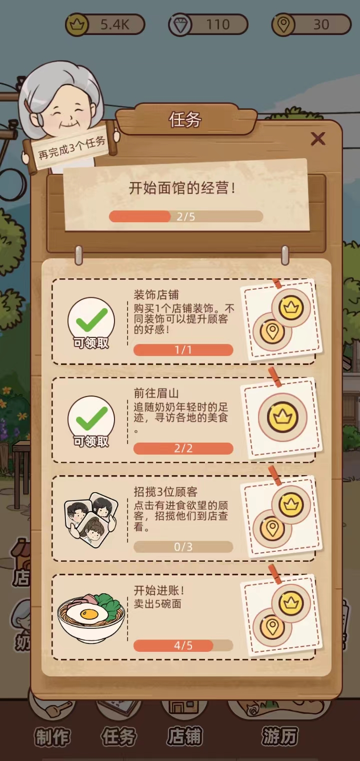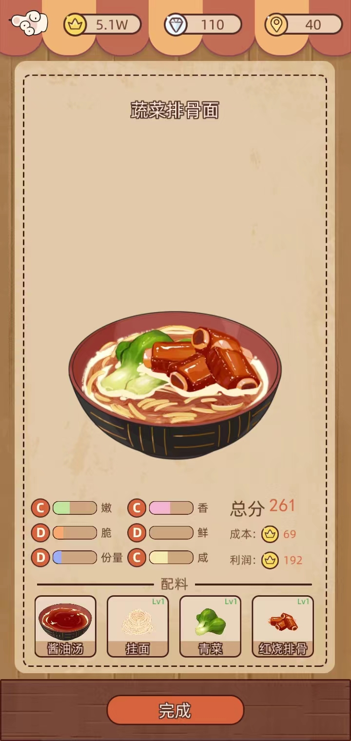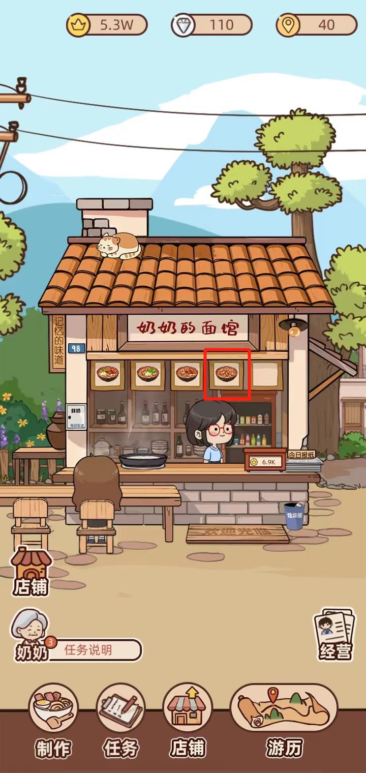 5、和家族一起经营面馆,解锁更多的面谱,为更多的客人做不同的美食,用更多更好的器具填满你的家;