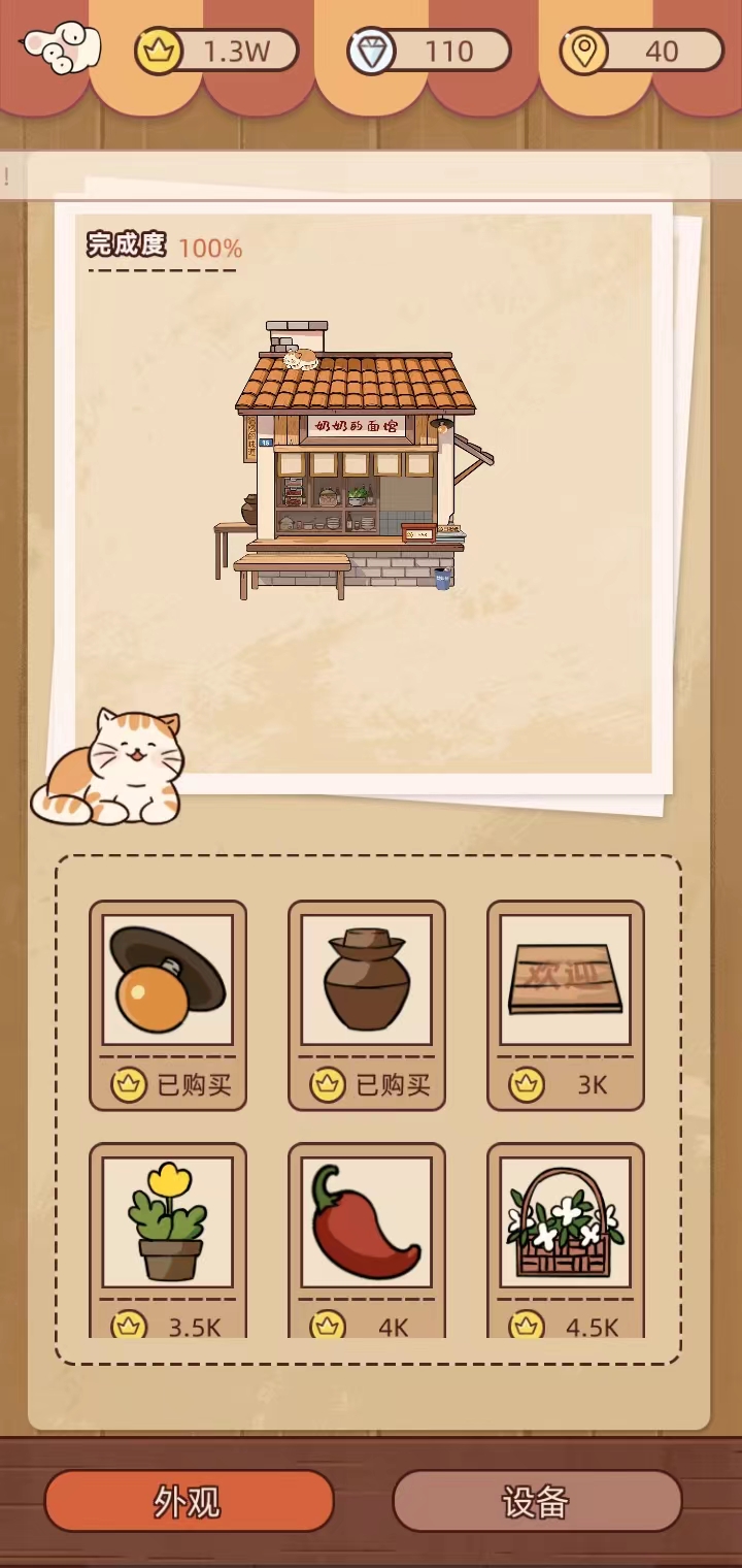 10、点击【店铺】,玩家可以在这里购买外观以及设备,为店铺增加人气,人气越高,吸引的顾客也就越多;