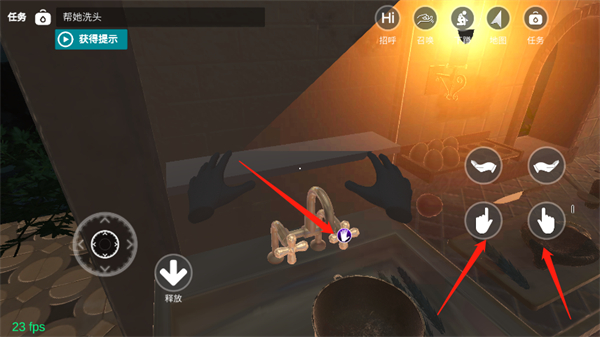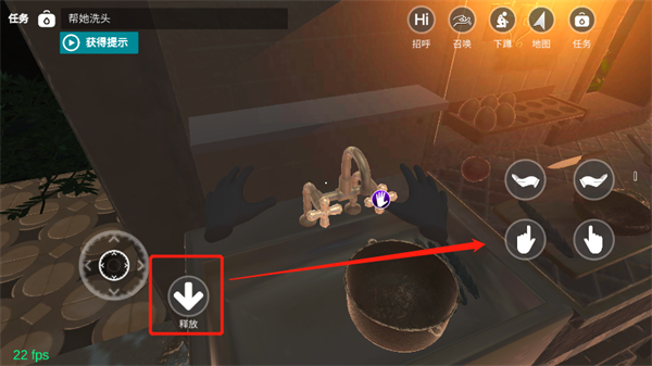 4、当左右手拿着物品时,可以同时点击下箭头、和左右边手指手势释放该侧手里的物品。