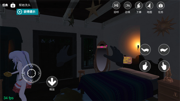 2、进入游戏后,左右手心向上手掌分别是“给”和“索要”,可以递给小忍物品或者索要物品。
