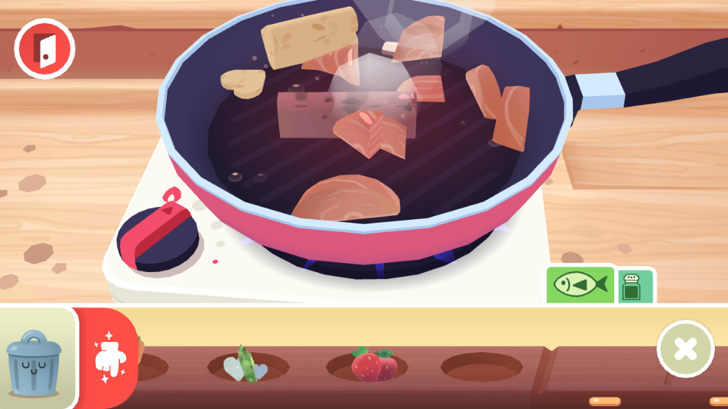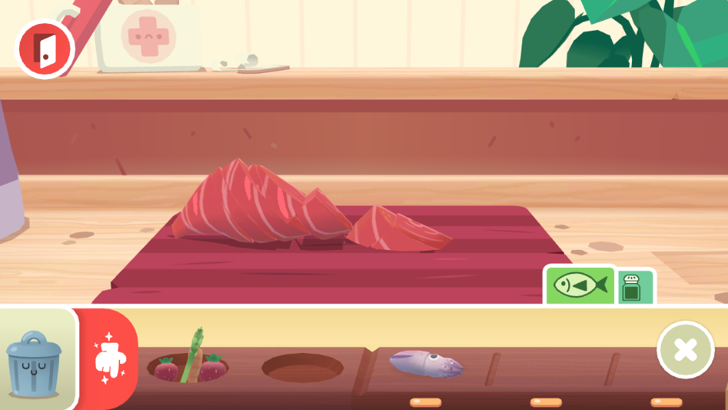 1、问候顾客,然后前往冰箱看看你所有新鲜食材。选择大米、金枪鱼、鳄梨、芦笋、鱿鱼、鲑鱼、辣椒、意大利腊肠、小萝卜、甘蔗(不开玩笑!)、姜、土豆、豆腐、虾等等材料。如果你更愿意选择蔬菜,可以切换成素食设置。