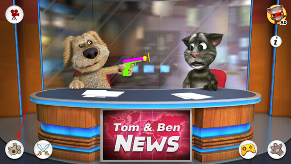 3、点按猫爪按钮:汤姆用水枪、气喇叭或玩具气枪惹恼本。点按交叉宝剑按钮:观看汤姆和本以超好笑的方式打架。