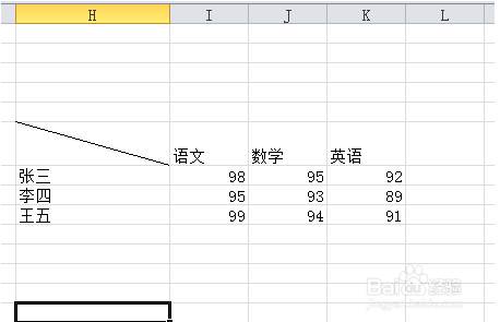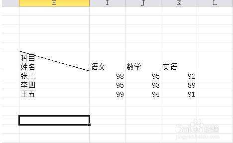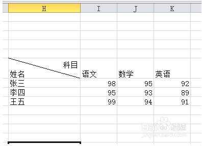 写好科目(横列的名称)之后按住Alt+Enter键,换行写竖列的名称。