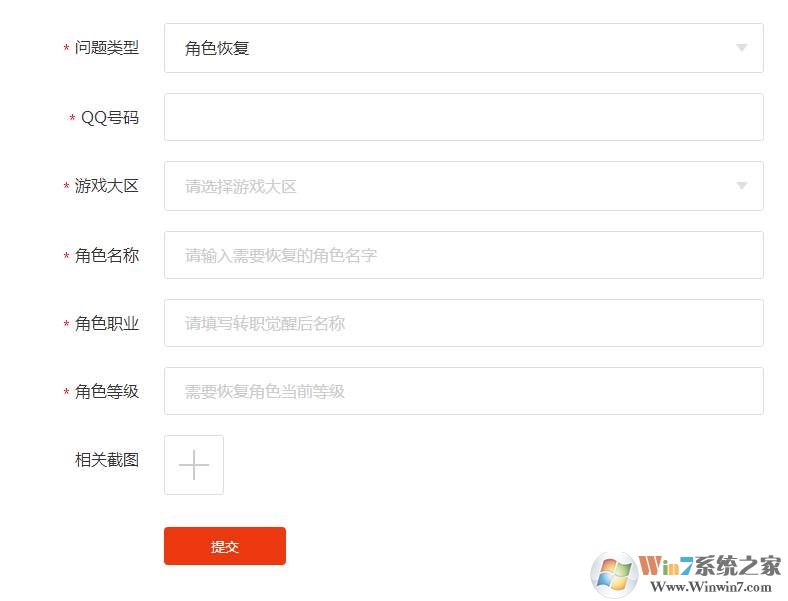 2、然后输入,QQ号码、游戏大区、角色名称、角色职业、角色等级,相关截图 根据提示务必认真填写每一项,“*”的必须填写,例如: