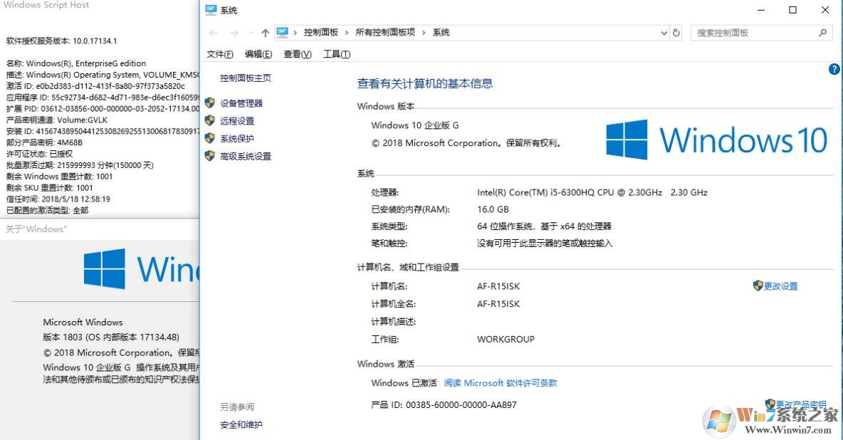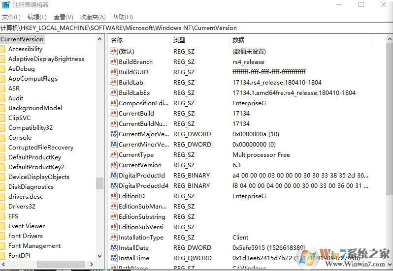 1、首先查看本机注册表,确认系统版本为企业版G