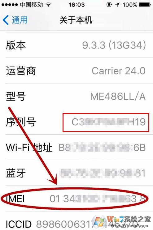 第一步:查看苹果的 IMIE 和 序列号(两个都可以查)