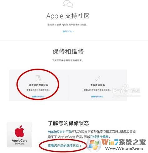 2、在“技术支持”页面往下翻,找到“查询保修状态”