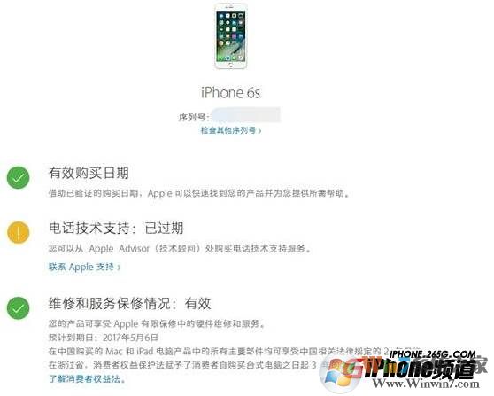 通过上面的几个步骤之后,我们就可以查询到苹果手机的激活时间,保修时间等相关信息了,如果手机检验真伪的话还可以使用itunes进行识别。