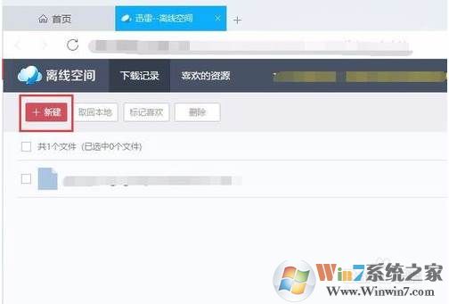3、然后我们点击离线空间中的新建按钮,在新建任务中将复制下载地址粘贴进去;