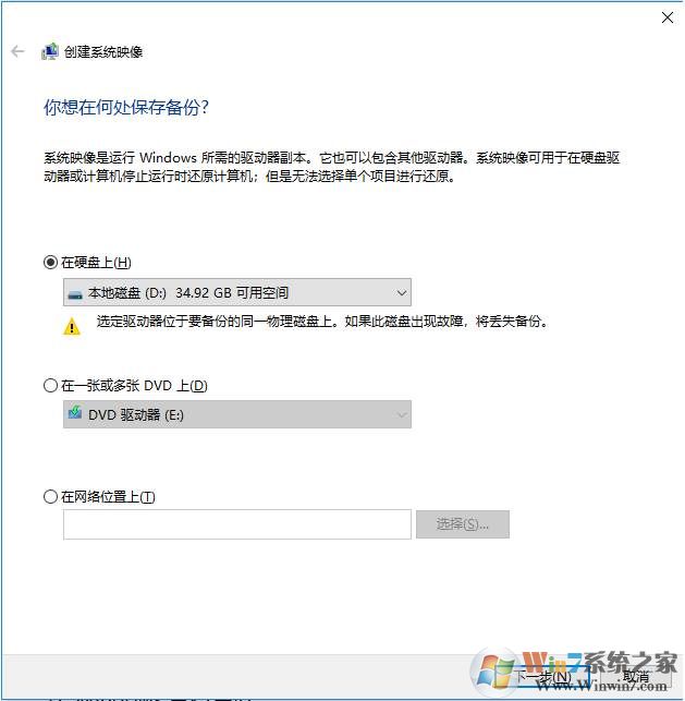 1、选择系统备份文件的存储位置,可以选择另一块硬盘的任意分区(系统推荐),也可以选择同一块硬盘的另外一个分区(比如D盘)(大部分人只有一块硬盘,别无选择了:-))