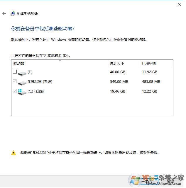 2、选择要备份的分区,默认包含引导分区(默认500MB)和系统分区(默认C盘)