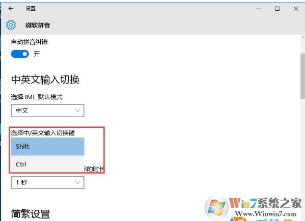 4、然后找到 “选择中英文输入切换键”,我们将其设置为CTRL键即可,如下图所示: