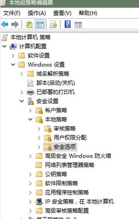 2、打开组策略后在左侧展开:windows 设置 --安全设置--本地策略--安全选项;