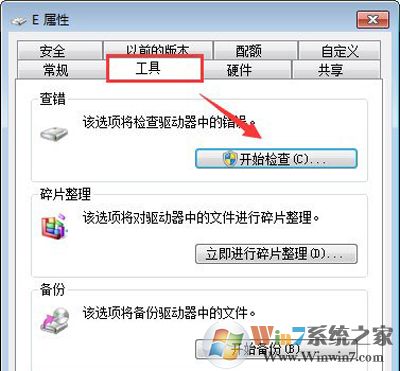 1、利用磁盘修复程序对SD卡进行修复操作。打开我的电脑,找到SD卡的盘符并在其上右击,选择”属性”-“工具”,点击“开始检查”,