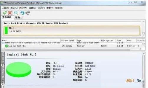 1、首先需要软件PartitionManager9.0分区工具【SD卡分区工具】,把TF卡插入读卡器后,运行PM软件。