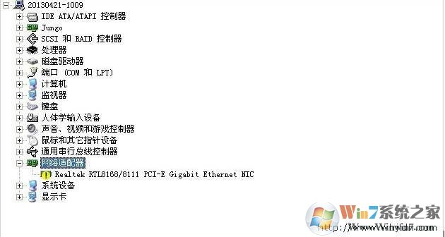 如下图,设备管理器没有网络适配器,也没有未知设备,网卡检测不到了。