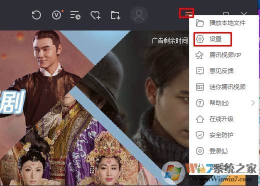 1、打开腾讯视频,然后点击右上角的三横,在下拉菜单中选择设置;