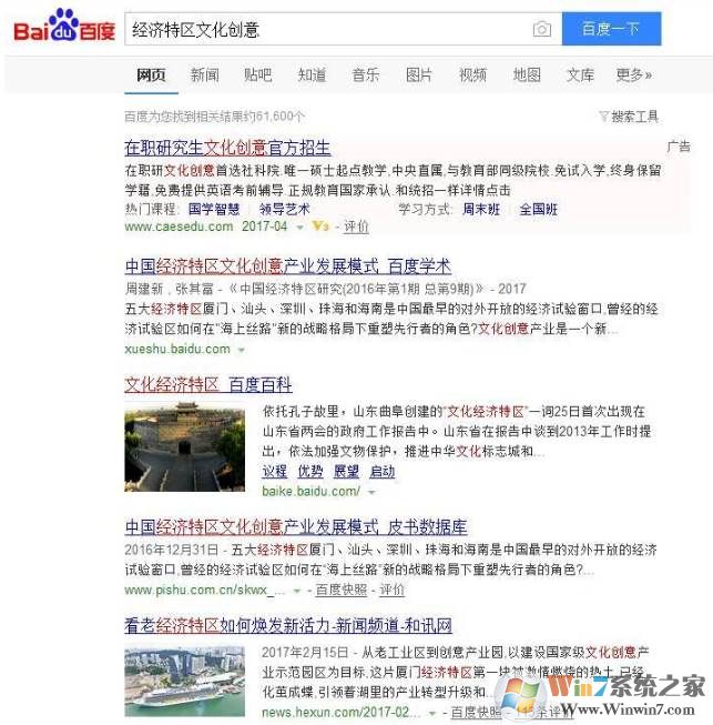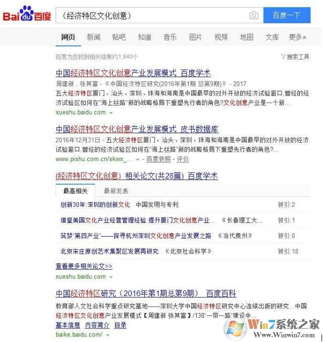 例如:输入一段较长的查询词“经济特区文化创意”,搜索结果中的查询词可能是拆分的。如果您对这种情况不满意,想实现不拆分查询词,给查询词加上双引号,就可以达到这种效果。