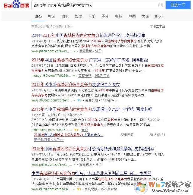 例如:关键词“省域经济综合竞争力”一定会包含在搜索结果的标题中,而intitle之前的“2015年”则可能在标题中,也可能在正文中出现。