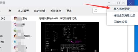 1、在登录后跟导出操作一样,在倒三角图标中选择导入消息记录,如图所示: