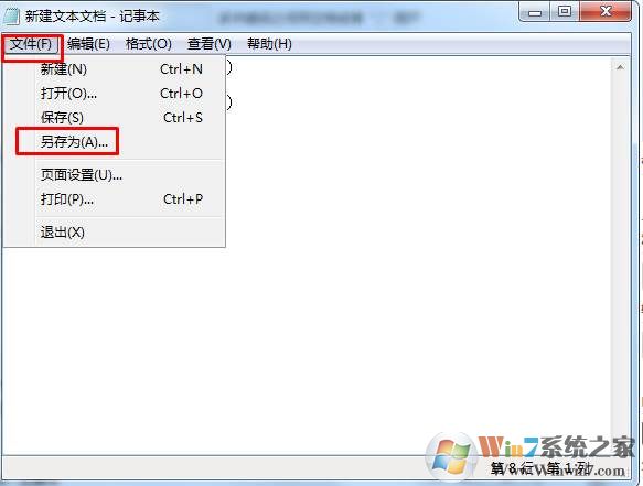 3、点击记事本上面的文件—另存为;
