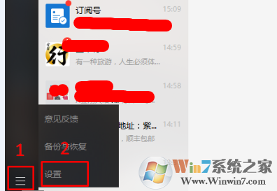 1、打开微信主界面,点击左下角的横杠标志,然后选择设置。