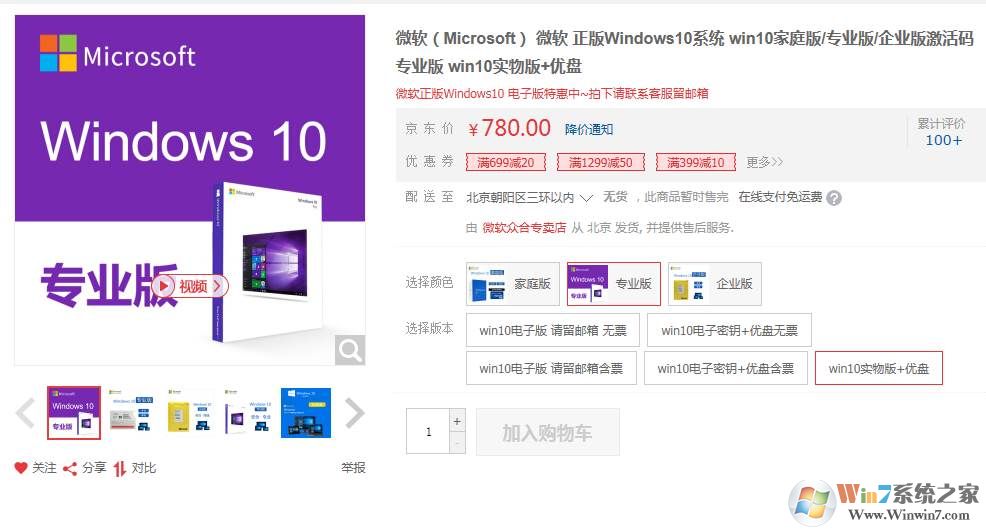 小编关注到京东有卖Win10正版激活码的,Win10专业版也才700多,小编没有买过暂时不知道真假。