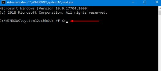 6、然后在命令提示符中键入:chkdsk /f X: (将X替换为当前操作系统的驱动器号);