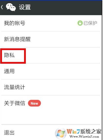 2、但是如果好友太多了,在聊天里也找不到,那么可以在设置——找到“隐私”菜单,然后点击进行查看和设置。(如下图)