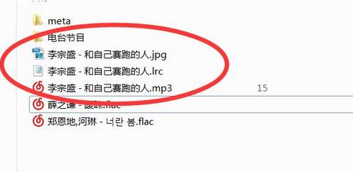 1、首先保证歌词(lrc)、封面(jpg,png等)、歌曲(mp3,wma,flac,ape,wav等)的文件标题一致。(注:歌词,封面,歌曲的文件后缀没有必要按照我举例的文件后缀一样,只要保持文件名一致即可);