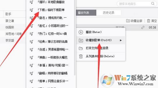 3、然后我们将所有的文件全部选中(按住ctrl然后鼠标一个个点击音乐或shift选中某一个区域内所有音乐),一起拖拽到,列表(歌曲会自动播放)→收藏到某一个歌单,如下图所示: