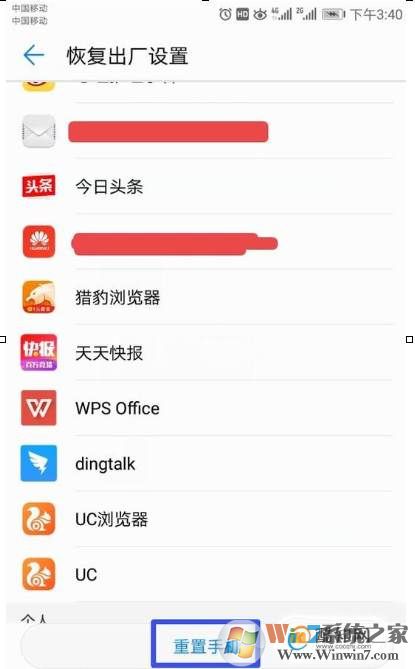 5、弹出的界面,我们点击重置手机,这样就恢复出厂设置了。还是比较简单的。