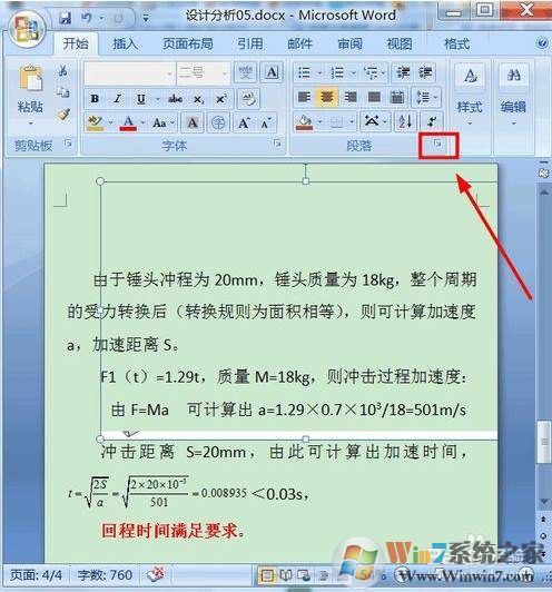 2、这时我们点击上方的工具条的“段落”工具栏右下方的斜箭头,如图所示