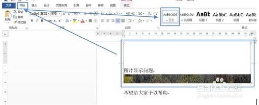 1、单击选中图片,然后在“开始”选项卡“样式”组,单击“正文”。