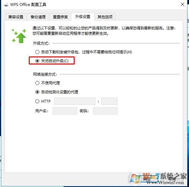 3、打开之后选择“升级设置”——选择为关闭自动升级,然后确定